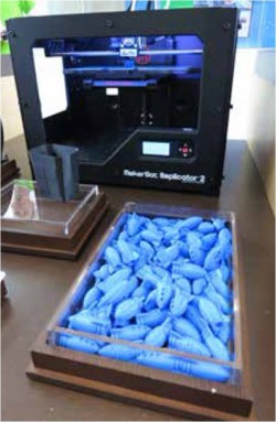 Skype ‘rockets’ produced by a 3D printer in a US Microsoft retail outlet. Each one takes 20 minutes to produce. |